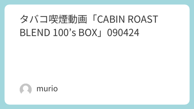 4.0 タバコ喫煙動画「CABIN ROAST BLEND 100’s BOX」090424 document.addEventListener('DOMContentLoaded', function() { var ctx = document.getElementById('canvas-twc1xk9s8').getCont... 2009.04.24 4.0キャビン喫煙動画S1紙巻煙草
