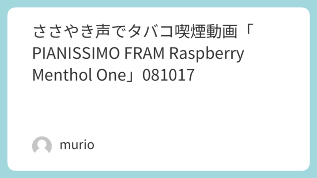 4.0 ささやき声でタバコ喫煙動画「PIANISSIMO FRAM Raspberry Menthol One」081017 document.addEventListener('DOMContentLoaded', function() { var ctx = document.getElementById('canvas-zgmdmfau7').getCont... 2008.10.17 4.0ささやき声ピアニッシモメンソール喫煙動画S1紙巻煙草