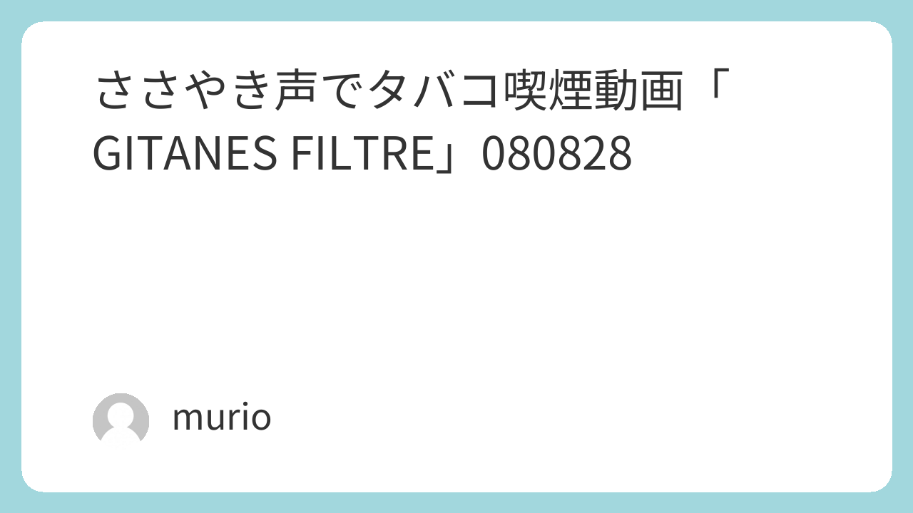 ささやき声でタバコ喫煙動画「GITANES FILTRE」080828 4.5 X Facebook はてブ LINE Pinterest コピー 2008.08.282026.02.23 これ、やたら太さにインパクトがあったなぁ。あと、吸えば吸うほど好きになってくる珍しいヤツでしたね。もちろん、2026年においては国内での取り扱いを終了しているゾ!