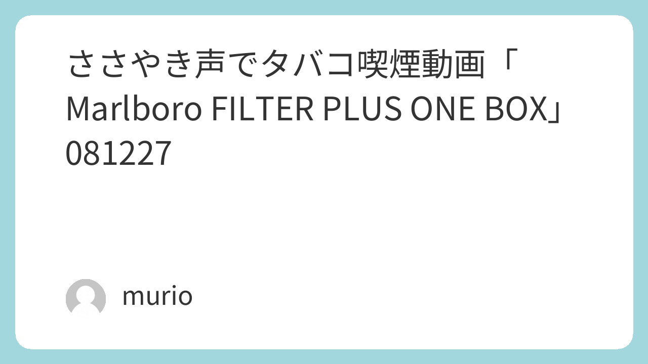 ささやき声でタバコ喫煙動画「Marlboro FILTER PLUS ONE BOX」081227