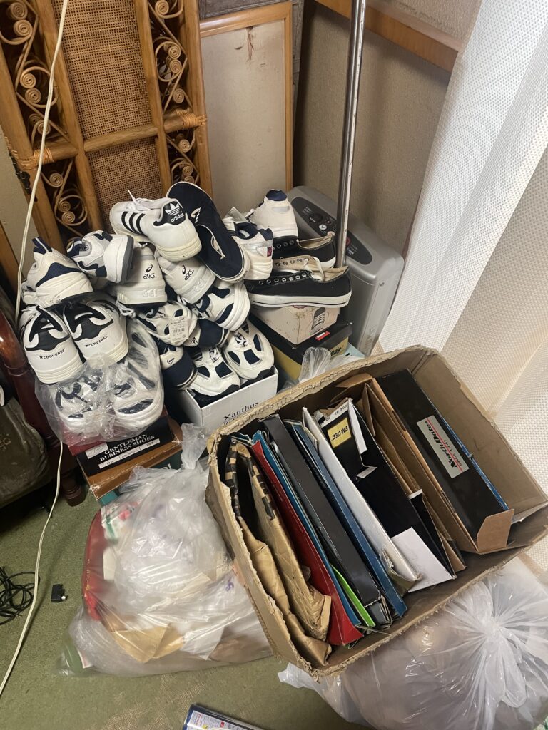 奥の部屋 Uncategorized X Facebook はてブ LINE Pinterest コピー 2025.09.162026.02.23 場所を食う靴を追い出して目に見えて汚いゴミだけを回収する作戦にでた 靴がとりあえずの20セット程度、ゴミ袋4袋分を回収 アフター画像↑若干かさが減ったかな程度
